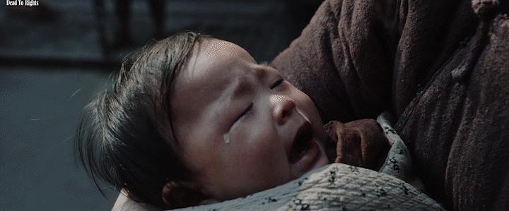 另外有几场戏是拉到街上与河边。尤其是街上那场杀婴戏,确实值得一看。那场戏在视听语言上,用声音与景别的对比营造了强烈的戏剧张力: