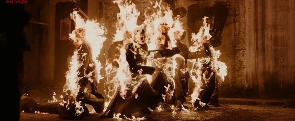 (实际上电影结构的原则更接近戏剧。横向对比片中后半部分镜头利用空间进行的搏斗戏份的设计,戏剧方面依靠感官进行氛围渲染的手法和影视方面对于空间纵深和层次的处理在此片中实现了相得益彰、相互成就)