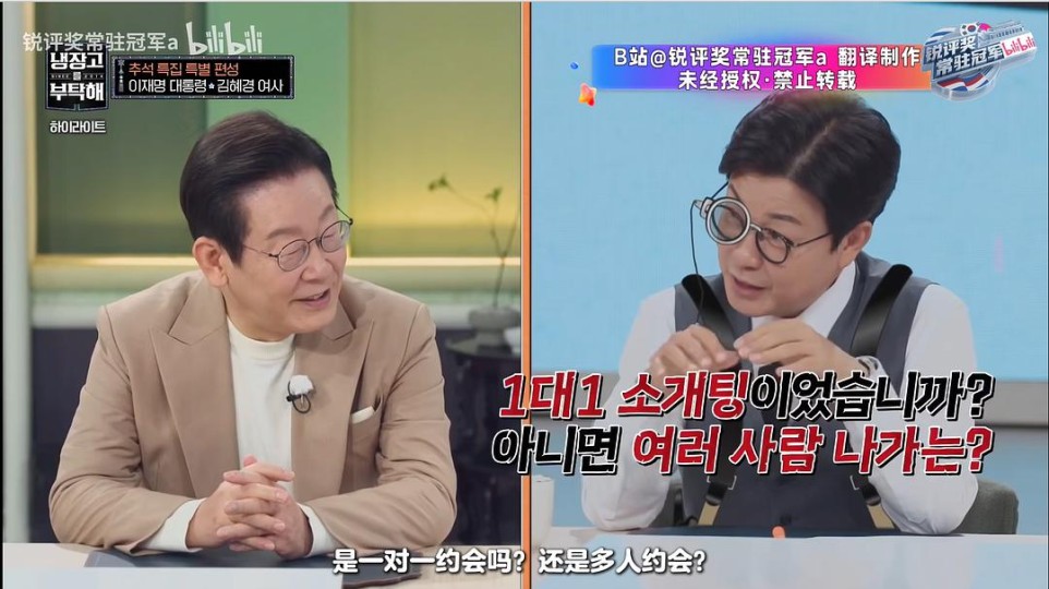 上一次为李在明在这里写些东西已经是五年前的事情了( 《同床异梦2》背后的“汽水市长”李在明(同床异梦2:你是我的命运)剧评 ),相比于城南市长时期的毫无包袱,这次以总统和第一夫人身份出演《拜托了冰箱》的“景明”夫妇,尽管依旧表现得风轻云淡,李在明甚至回忆起大学时和同学一起吃西餐的事情(大概率是女同学),但毕竟已经是总统之尊,一言一行都牵动国计民生,所以也无法免俗地把大部分时间留给了文化输出、推介“K-food”的主题。