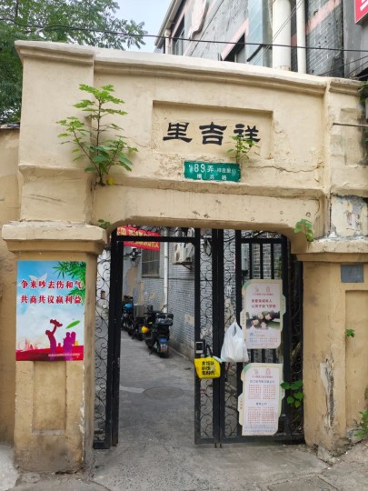 电影里徐先生和神秘女子还一起走过横浜路旁边的祥吉里。电影里虽然昏暗,但音能隐约看到一个门头,“祥吉里”里的祥字特别明显,今天门头还在但外观和字体都已经全部粉刷过了。关于此处和虹口老土地施高塔老师确认了,就是在虹口横浜路和宝山路口的祥吉里。