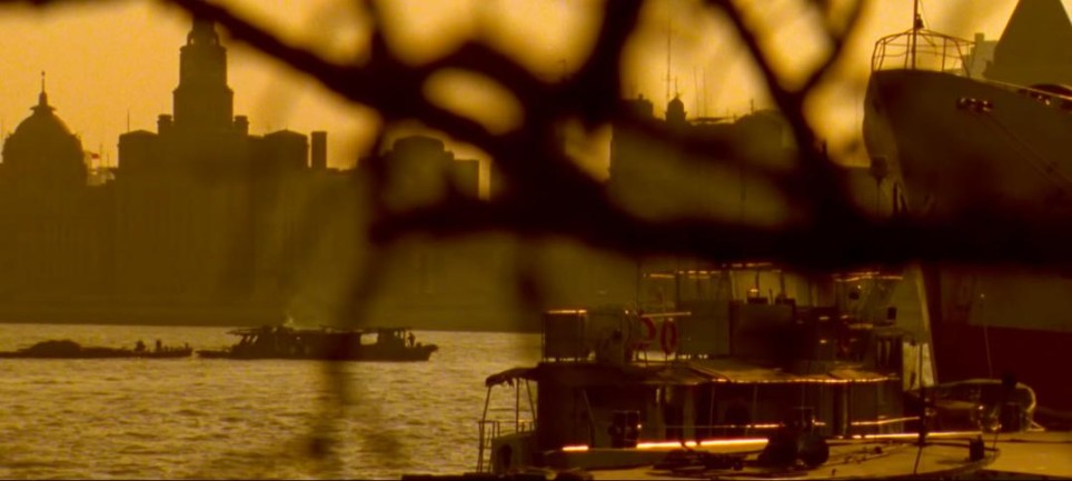 3.外滩外景和内景外滩和苏州河都是上海的母亲河,也是最能体现上海城市的地标点。在做电影里的上海栏目时我们统计过,拍摄上海的电影尤其是年代剧里,外滩出现的镜头是最多的,其次是苏州河。比如张艺谋的《摇啊摇,摇到外婆桥》(1995),李安的《色戒》(2007),娄烨的《兰心大戏院》(2019)。要是拍老上海电影里没有外滩和苏州河便觉得差点意思。外滩沿黄浦江立面的西洋老建筑从上世纪30年代起至今基本都没太变化,从90年代起,外滩立面背后逐渐树立起了不少高楼大厦,不少电影都有些穿帮镜头,但只要特意寻找角度拍摄局部或建筑细节还是能完美避开的。《人约黄昏》里外滩、苏州河都有,而且还有外滩老建筑里的内景,堪称优秀!