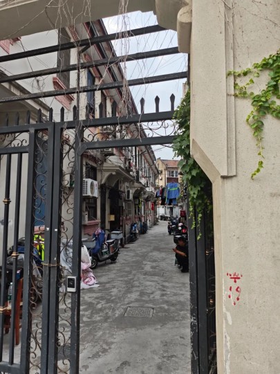 这段取景于虹口山阴路吉祥路附近,唯独有这里是拱形的门。淞云别墅和大陆新村的门都不是这种形状。
